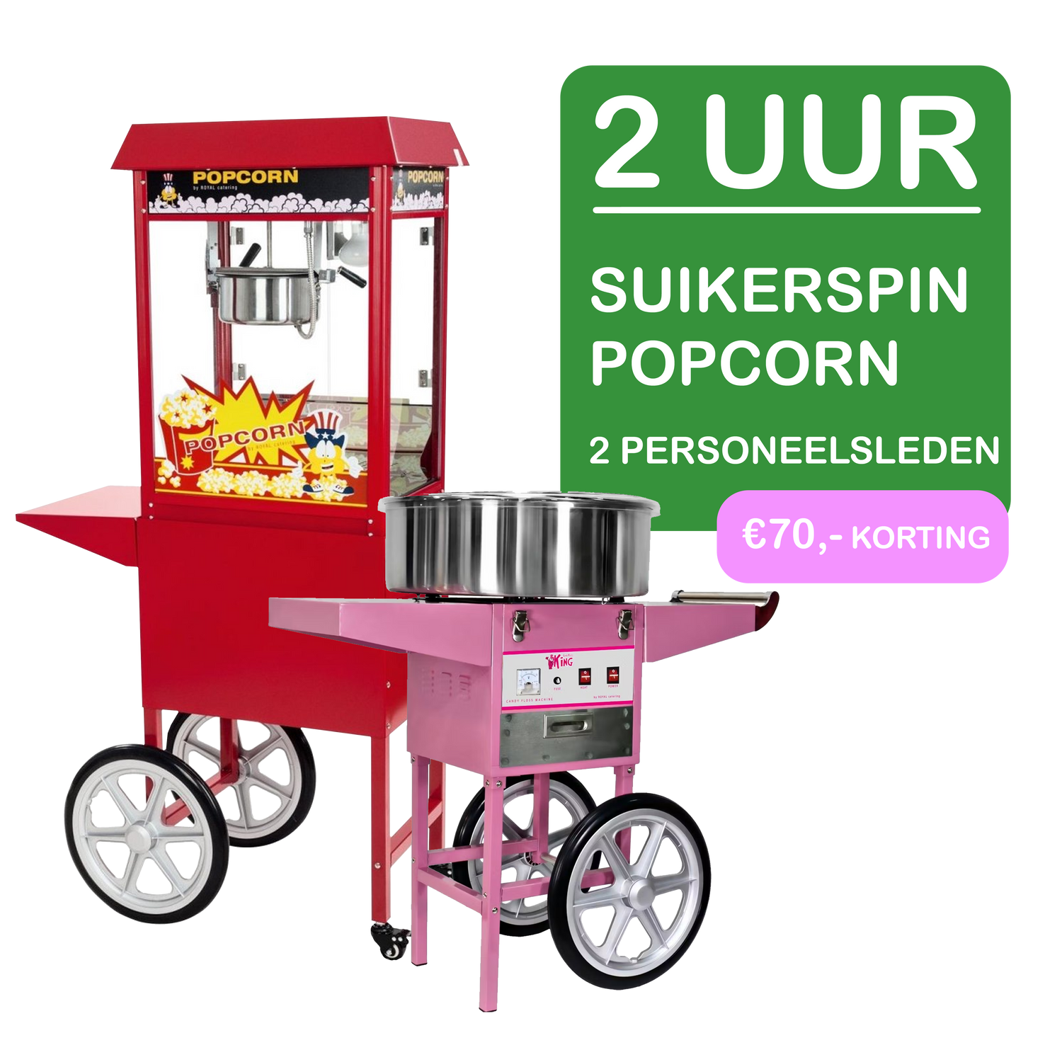 Boek nu onze suikerspin- én popcornmachine inclusief vriendelijk personeel en ontvang maar liefst €70 korting op het totaalpakket!